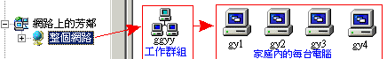- 請將每台電腦的工作群組名稱設定為一樣!但