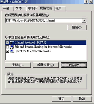 這個畫面告訴你目前的網路狀態,然後按下『內容』會出現如下的畫面: