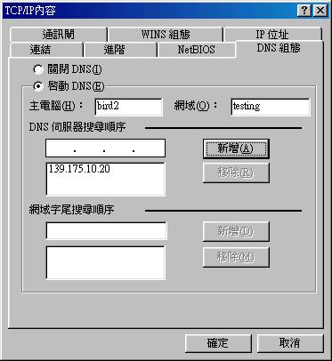 - Client 的電腦 DNS 設定與主機的 DNS 設定相同(這裡最容易搞錯! 在 Client 端的電腦的 DNS 必須設定為類似 139.175.10.20 這個 Seednet 提供的 DNS 主機 IP 才行,當然,如果您是 Hinet 的用戶,那麼也需要輸入 hinet 的 DNS 主機 IP ,千萬記住,這裡『不是輸入你的 Windows 2000 的 IP』,網友們最容易出現錯誤的地方就是在這裡,大家常常會將 DNS 輸入成 192.168.0.1 ,這是『錯誤的』,請特別小心囉)