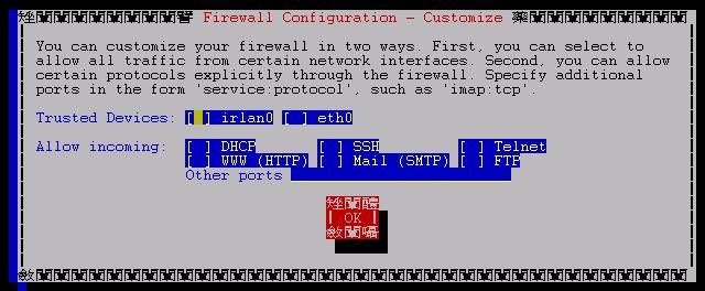 - Firewall configuration :這個是關於 ipchains 的防火牆機制設定;