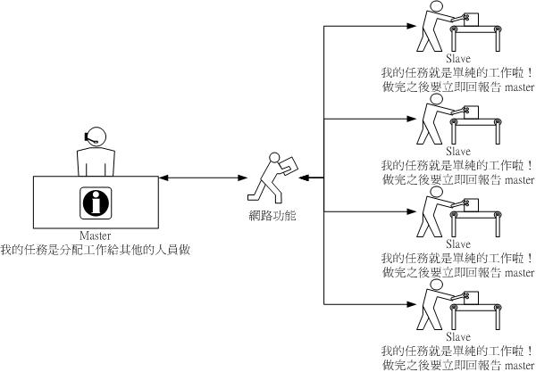 Master 所要求的計算工作,因此,Slave 能夠越簡單越好~至於 Master 上面,由於我們都是在