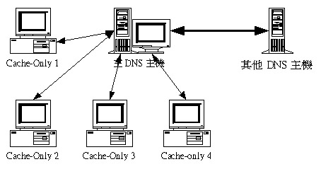 DNS 主機當中,經由分層管理,所以每一部主機的記憶的資訊就不會很多,