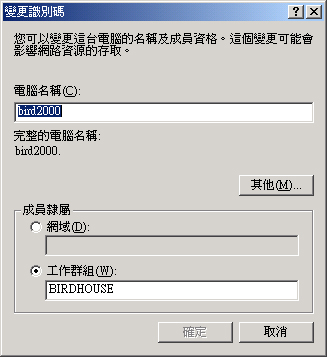 [root@test root]# mkdir /home/samba/netlogon [root@test root]# mkdir /home/samba/profiles [root@test root]# cd /home/samba/netlogon [root@test netlogon]# vi startup.tmp net time \\birdhome /set /yes net use U: \\birdhome\homes net use T: \\birdhome\tmp # net 是 Windows NT 網域的相關指令用法: # net time :表示目前 (client) 使用的時間要與 \\server (在這裡是 birdhome) # 同步的意思!有時候因為 Server 與 Client 不同步,某些程式 # 會有問題! # net use [device:] [directory] # device: 那個 device 是 Windows 的磁碟槽啦! # directory 是 SAMBA 主機相對的目錄! # 在我這個案例當中,每個使用者登入之後,他會在檔案總管當中, # 發現有個 U 槽,而且內容是 \\birdhome\homes 相同; # 發現有個 T 槽,內容則是 /tmp 喔! # 特別留意, startup.bat 必須要是 DOS 的格式,所以在 Linux 上編輯時, # 還要加上一些特殊的轉換動作! [root@test netlogon]# cat -A startup.tmp | tr '$' '\r' > startup.bat [root@test netlogon]# cat -A startup.bat net time \\birdhome /set /yes^M$ net use U: \\birdhome\homes^M$ net use T: \\birdhome\tmp^M$ # 看到了嗎?!每一行的最後面要加上有 ^M 這個 Windows 的傑作才可以! # 除此之外,我們還要將原先在 bird2000 上的 bird 這個使用的個人設定值 # 給他複製過來 SAMBA 主機上面喔!在 Windows 2000 預設的情況下, bird # 這個人的設定值會是在: C:\Documents and Settings\bird # 請將這個 bird 目錄完整的給他複製到 /home/profiles/bird 當中,也就是說, # 在 SAMBA 主機內的 /home/profiles/bird 裡面就有原先 Windows 2000 內的 開始 Application Data Favorites My Documents .... # 等等的檔案資料喔!然後這樣做: [root@test netlogon]# cd /home/samba/profiles [root@test profiles]# chown bird -R bird/ # 這個時候您應該已經將原先 Windows 的 bird 這個人的設定值給他複製到 # /home/samba/profiles/bird 當中了才對! |